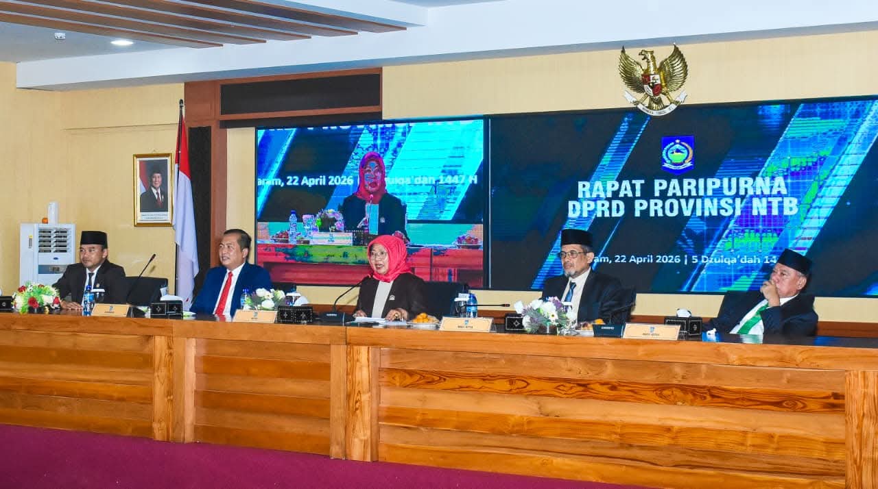 Mataram – DPRD Provinsi Nusa Tenggara Barat (NTB) menyampaikan rekomendasi terhadap Laporan Keterangan Pertanggungjawaban (LKPJ) Kepala Daerah Tahun 2025 dalam Rapat Paripurna yang digelar di Ruang Rapat Utama Kantor Gubernur NTB, Selasa (22/4/2026). Rekomendasi tersebut menjadi catatan strategis untuk meningkatkan kinerja dan akuntabilitas Pemerintah Provinsi NTB ke depan.