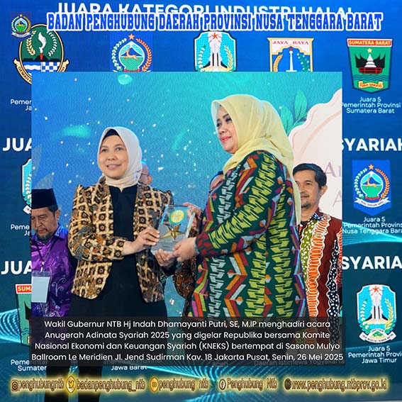 Wakil Gubernur NTB Hj Indah Dhamayanti Putri, SE, M.IP menghadiri acara Anugerah Adinata Syariah 2025 yang digelar Republika bersama Komite Nasional Ekonomi dan Keuangan Syariah (KNEKS) bertempat di Sasono Mulyo Ballroom Le Meridien Jl. Jend Sudirman Kav. 18 Jakarta Pusat, Senin, 26 Mei 2025.